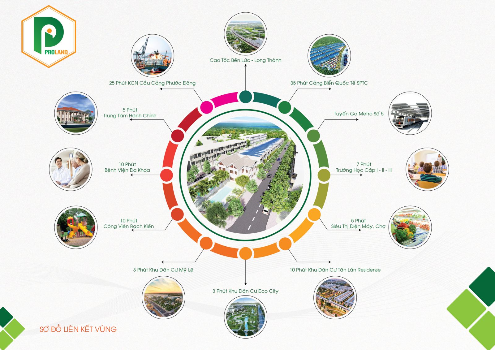 Là tuyến giao thông huyết mạch kết nối TP.HCM với các tỉnh khu vực miền Tây. Ngoài ra vị trí dự án còn nằm liền kề các công trình trọng điểm quốc gia như Vành đai 3, Vành đai 4, đườg Song hành quốc lộ 50, Gas metro số 5, Cảng quốc tế Long An. Đồng thời, dự án còn giáp các cụm khu công nghiệp lớn như Tân Kim, Đông Nam á, Cầu Tràm, Phước Đông.